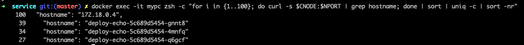 # docker exec -it mypc zsh -c "while true; do curl -s --connect-timeout 1 $CNODE:$NPORT | grep hostname; date '+%Y-%m-%d %H:%M:%S' ; echo ; sleep 1; done" 반복 접속 후 아래 확인